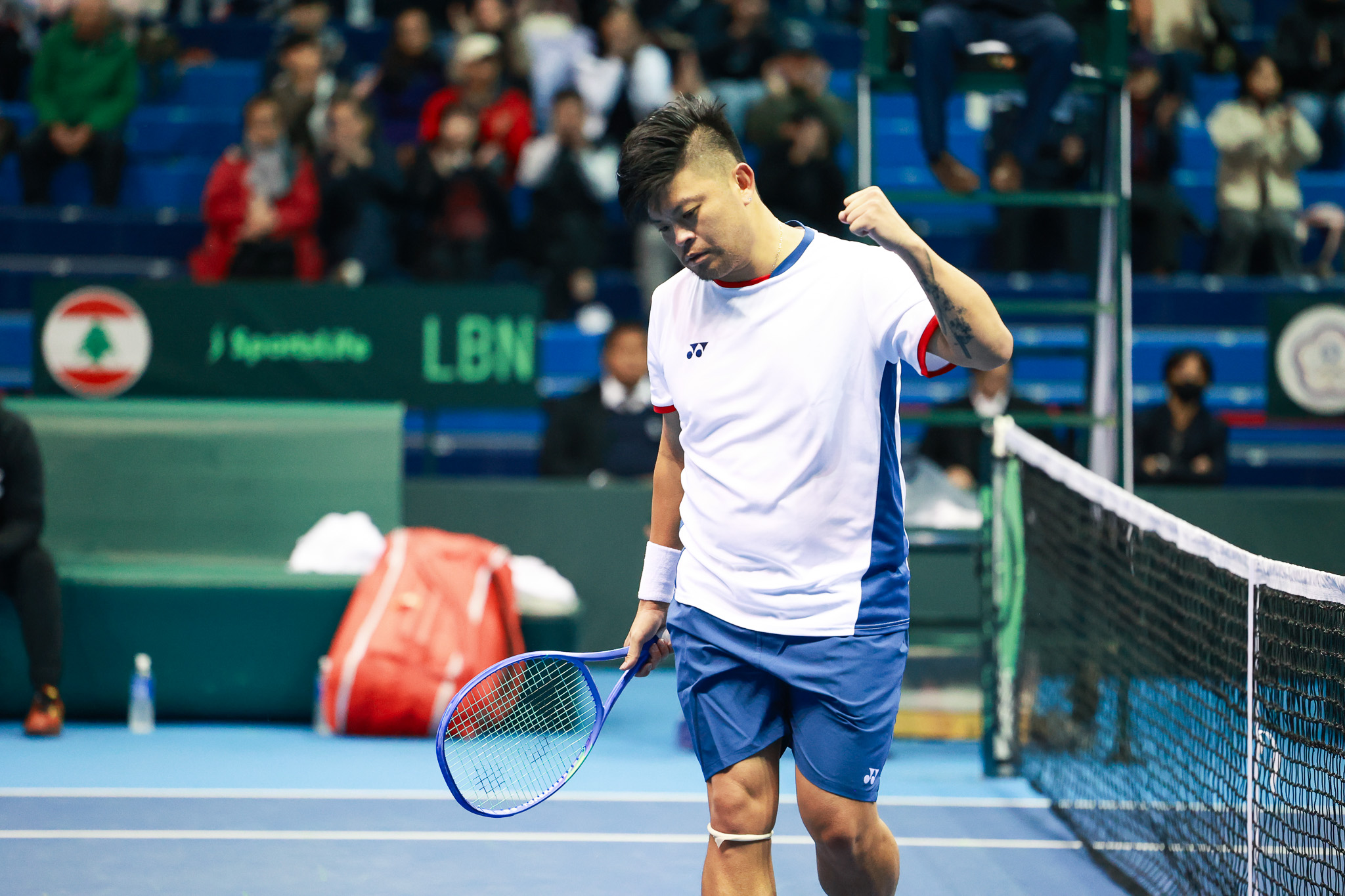 台灣雙打組合在首盤上演逆轉秀,最終以 7:6、6:3 拿下關鍵第二勝,為球隊奠定勝基;緊接著登場的單打賽事,由吳東霖迎戰黎巴嫩選手 Benjamin Hassan。吳東霖掌握比賽節奏,以 6:3、6:4 直落二擊敗對手,幫助台灣最終以 3:1 擊敗黎巴嫩,重返世界一級。