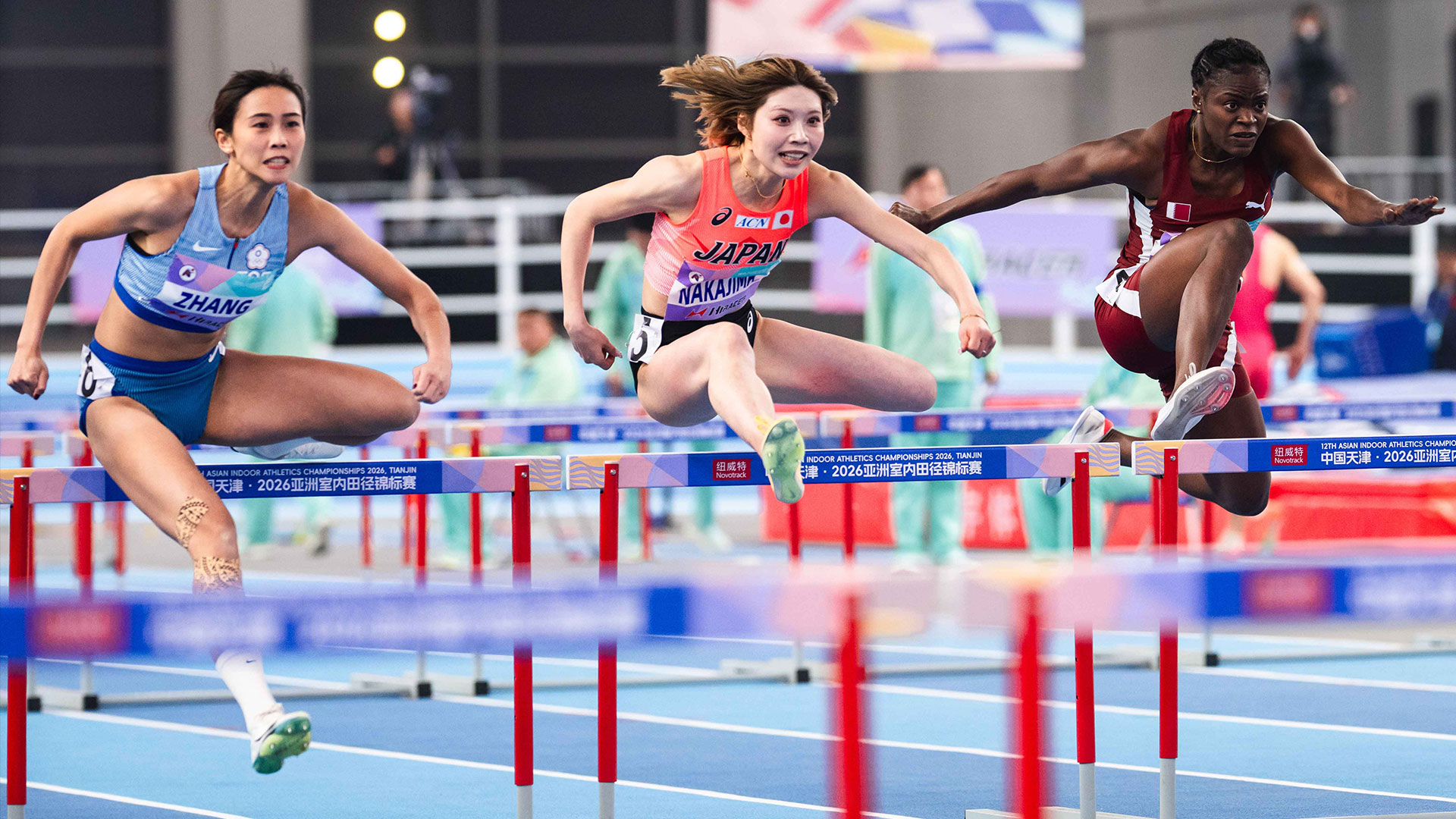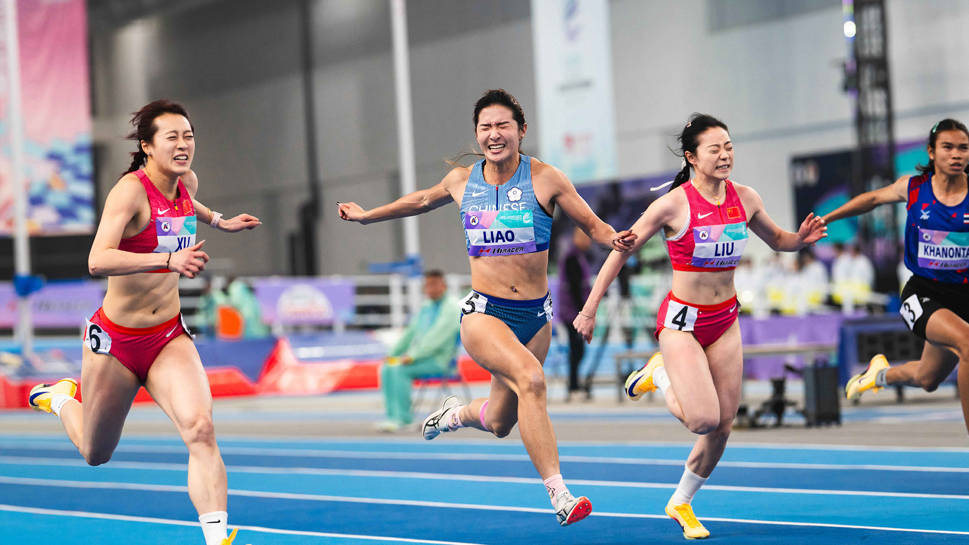 「跨欄甜心」張博雅不只兩度刷新全國紀錄,更奪下金牌。張博雅去年在中國南京世界室內田徑錦標賽60公尺跨欄,以8秒27成為全國紀錄保持人。這次再度挑戰室內賽,先在60公尺跨欄預賽跑出8秒18預賽第一、破全國,接著決賽張博雅更進化,飆出8秒12再度刷新全國紀錄,奪下個人在亞洲室內賽的首面金牌。