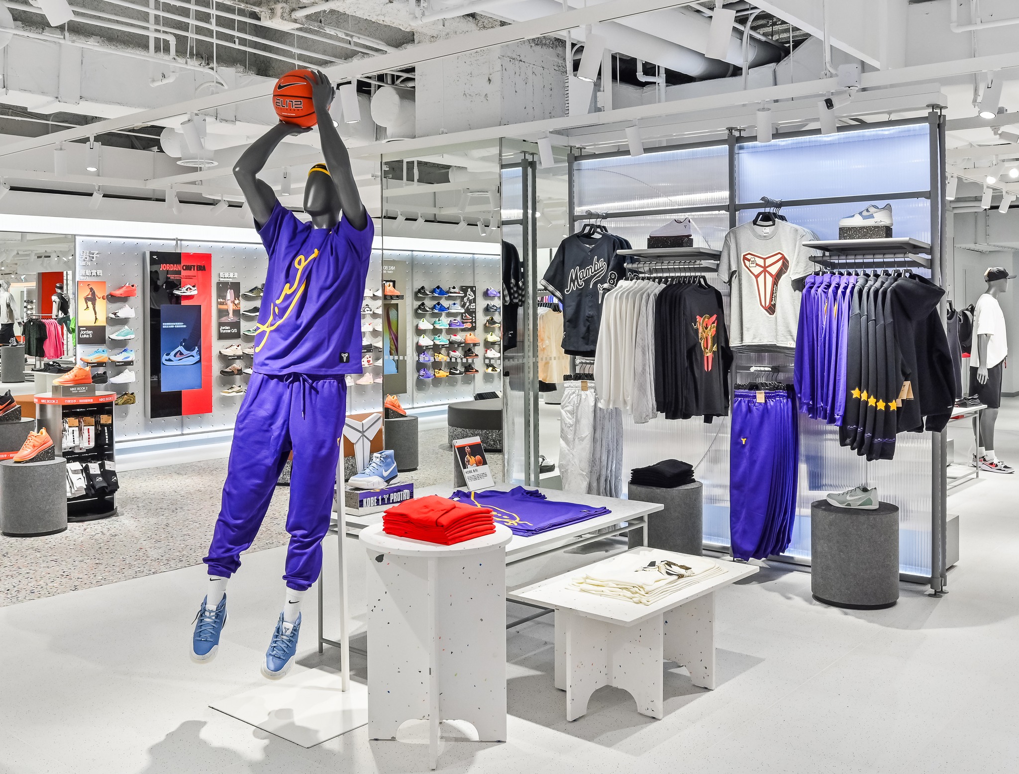 向籃球傳奇 Kobe Bryant 致敬,於 Nike 臺北品牌體驗店籃球區域中特別設置 Kobe Bryant 系列區域,展示包含籃球鞋款與服飾在內的經典與全新款式,呈現在性能、設計與創新科技上的突破,讓籃球愛好者可以近距離感受 Kobe Bryant 對球場的熱忱與對極致運動表現的追求。此區域不僅致敬經典,也鼓勵每一位運動員在籃球場上挑戰自我,延續曼巴精神的無畏無懼。